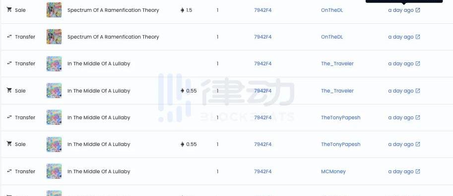 而在消息宣布的近十分鐘前,0x794便大量買入Dailydust的NFT作品并將這些作品高價掛單。