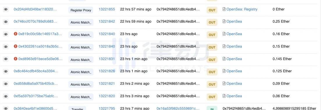 而查看0x794交易記錄時我們便會發現這個地址是用來在OpenSea交易NFT的賬戶。