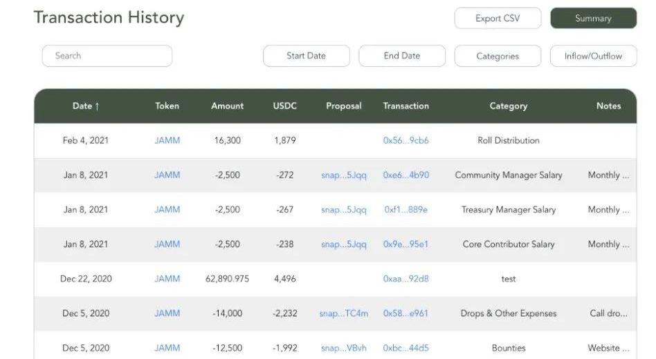 Llama上的JAMM社區交易摘要Parcel和MultiSafe具有ETH或ERC-20的一鍵式批量支付、定期支付、會員支出限制以及提供當前資產分配概覽的儀表板。6