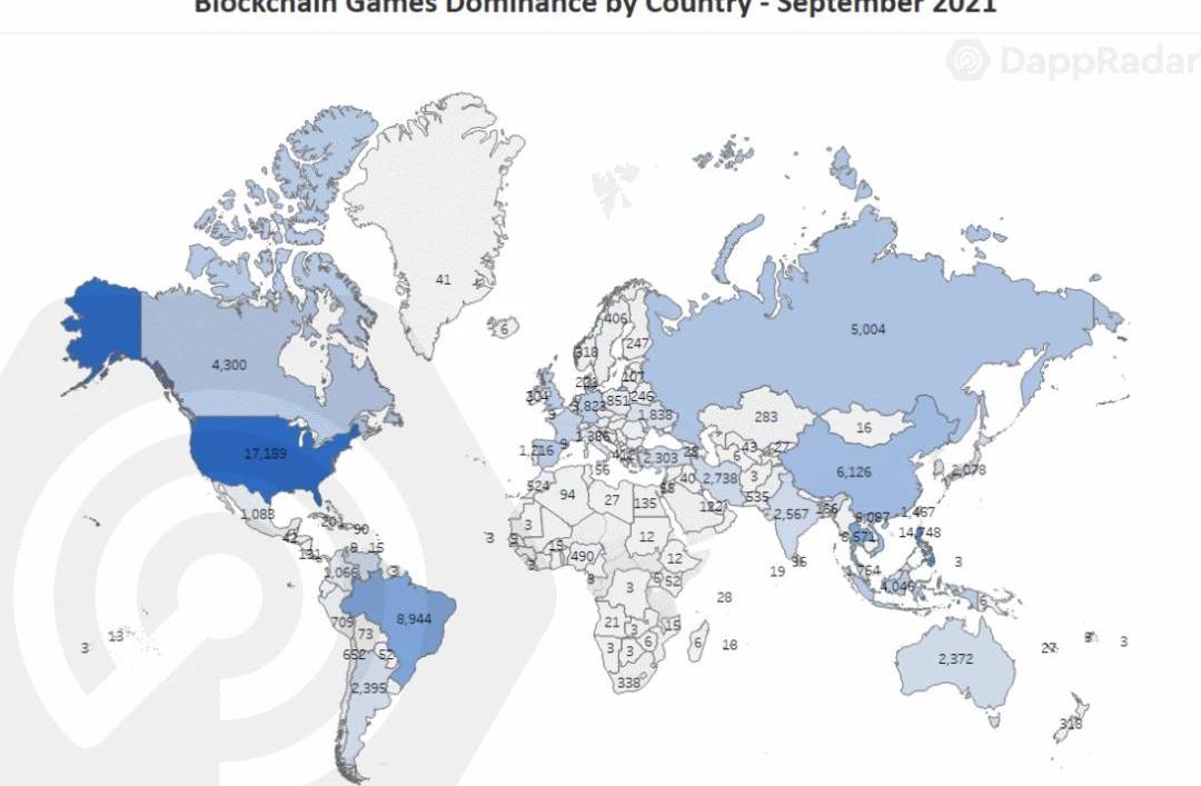 盡管像CryptoPunks或NBATopShot這樣的老牌NFT收藏品與前幾個月的交易量相去甚遠(交易量分別下降了58%和45%),但像CrypToadz、MekaVerse和SneakyVampiresSyndicate這樣的新收藏品,在不到一個月的時間里就創造了超過25億美元的交易額。此外,通過讓世界各地的數字藝術家都能看到NFT,NFT領域正變得更加全球化。玩賺游戲會擴展到新的地區嗎?