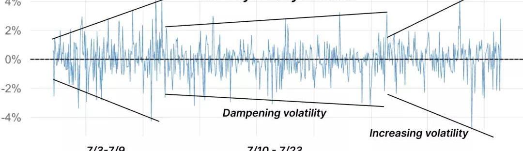 XRP/HKD-0.71%本周加密貨幣市場出現了強勁的走勢,ETH回到了2600美元的高點。DeFi代幣的交易價格也更高,基本上回到7月初的水平。正如我們在過去關于波動性的討論中所指出的,波動率的延長收緊創造了一個盤繞的彈簧,該彈簧現在已經展開。