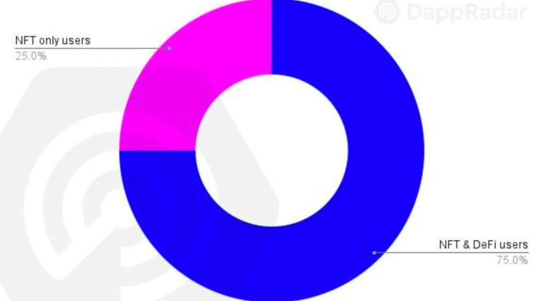 來源:DappRadar另一方面,與5月份相比,我們看到連接到以太坊NFT的錢包增加了6%。75%有NFT存在的錢包也與以太坊DeFi的dapp進行交互。25%的NFT錢包專門集中在這一領域。