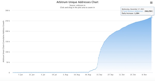 Arbitrum網絡唯一地址數變化趨勢??來源:arbiscan.io