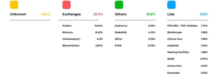 ETH2.0staking項目TVLhttps://DeFillama.com/protocols/staking如果說原本Lido的去中心化程度可能是被競爭對手攻擊的軟肋,那么隨著7月27日團隊公開的后續的去中心化措施,這一最后的短板也被補足。我們認為,得到了幾乎全部DeFi藍籌和代表以太坊正統性的基金支持的Lido,在去中心化短板補足之后,由于stETH的流動性護城河和與之相關的網絡效應,stETH在ETH質押衍生品里將非常可能會“贏家通吃”,進而會進一步提高Lido在ETH2.0中的份額。LidovsCEX
