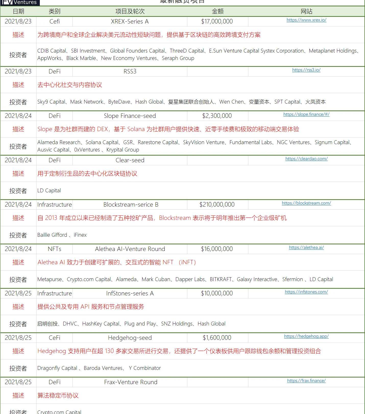 來源:Debank統計日期:2021.8.29近期TVL增量情況較好協議