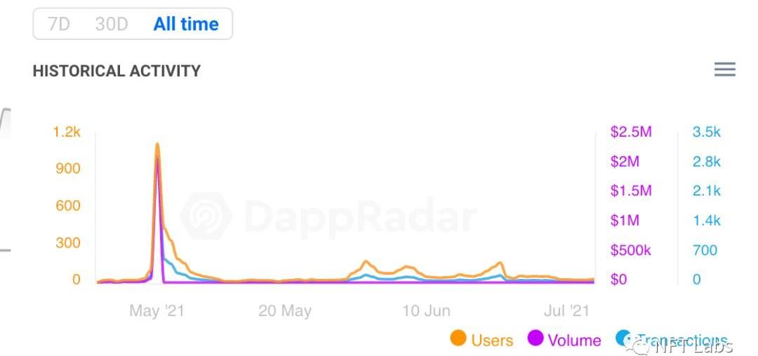 這也與LarvaLabs推出的Meetbits形成對比。Meebits是算法生成的3D體素字符,在視覺上類似于Minecraft頭像。Meebits由LarvaLabs于5月創立,該團隊曾推出知名NFT收藏品CryptoPunks和Autoglyphs,LarvaLabs的品牌影響力和自帶的聚光燈效應為Meetbits的推出鋪平了道路。然而Meetbits的價格非常昂貴,在總共20000個Meebits中,有9000個通過荷蘭拍賣形式公開發售,起價為2.5ETH。剩余的11000個獎勵給已經擁有Cryptopunk和Autoglyphs的收藏家,每個Cryptopunk和Autoglyph都可以免費鑄造一個Meebit。因此,這種獎勵機制是從上到下傳遞的,Cryptopunk和Autoglyphs的收藏家的加入是Meetbits熱潮的導火索。同時,這一機制傳達了一個信息——即收藏家會因持有LarvaLabs發行的NFT而獲得獎勵。向CryptoPunks的收藏家免費提供Meebits,同時向其他人收取2.5ETH的入場費。這使富有的收藏家變得更加富有。現在的CryptoPunks并不便宜,根據LarvaLabs市場的數據,現在最便宜的Punk售價約為17.5ETH。對于其他人而言,一開始售價就很高。這更像是對Cryptopunk持有者的獎勵,而不是為新人收藏者準備的東西。一個是面向資金充足NFT收藏家,一個是從下到上的新手天地。根據Opensea上7月份的數據,BAYC在二級市場價格正在上漲,目前BAYC的底價為2.52個ETH,Meebits的底價為1.05ETH。在6月1日,一只BAYC以49.99個ETH的價格售出,收益率高達62500%。雖然這個價格仍然低于Meebits支付的最高價格303個ETH。社區氛圍+社交資本