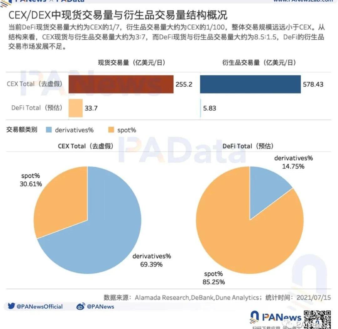 XRP/HKD-7.37%分析師|Carol編輯|Tong出品|PANews2020年加密貨幣市場有兩大值得關注的趨勢,其一是年初中心化交易所的衍生品交易迎來爆發,全年比特幣期貨合約的持倉量從約27億美元上漲至約94億美元,漲幅達到248.15%。其二是DeFi協議在下半年得到了適度的應用,借貸協議和AMMDEX成為主導產品,總鎖倉量從6.7億美元增長到了145億美元,漲幅約2100%。按照中心化交易所中金融產品的發展路徑,不少分析師認為在DeFi現貨交易得到長足發展后的今年,DeFi衍生品也將迎來發展機遇期。那么,今年已過半,DeFi衍生品發展得如何了?PAData對DefiLlama和其他公開資料中收錄的鎖倉量較高的三大類共21種衍生品協議進行深度分析后發現:1)DeFi衍生品品類已十分豐富,涵蓋期貨、期權、指數等多個細分領域,其中,期權和指數產品的形態更豐富,已延展出如結構性產品、期權穩定幣、含流動性兌換和元治理的指數基金等。2)DeFi衍生品的交易量尚小,按照預估,當前DeFi衍生品的日交易量僅相當于DeFi現貨交易量的1/6,相當于CEX衍生品交易量的1/100。3)從衍生品與現貨交易的結構占比來看,DeFi領域更加失衡。當前,DeFi衍生品預估交易量與現貨預估交易量的比值大約為1.5:8.5,而同期CEX衍生品預估交易量與現貨預估交易量的比值已達到約7:3。如果比照CEX的交易結構,在靜態發展下,理論上衍生品的交易量還有當前規模13倍左右的發展空間。4)DeFi衍生品協議提供的流動性遠低于CEX,當前各DeFi衍生品協議的鎖倉量均值約為3852.98萬美元。其中,僅SetProtocol、IndexCoop和dYdX的鎖倉量超過1億美元。5)DeFi衍生品的預期收益率不佳。與借貸產品相比,衍生品中僅結構化產品在同種資產的預期收益率上占優,而指數衍生品中有75%的產品今年的收益率為負,其中多個產品的虧損幅度都超過30%。6)DeFi衍生品協議提供的流動性挖礦激勵價值也普遍顯著縮水。最近30天,Messari監測的DeFi概念幣的平均漲幅約為-18.13%,而DeFi衍生品治理代幣的平均漲幅為-28.08%,且16種觀察代幣中僅2種代幣的價格是上漲的,其余普跌。7)DeFi衍生品的發展需要改善流動性、激勵、產品預期收益率方面的制約。DeFi衍生品已涵蓋期貨、期權和指數,多種創新機制上線