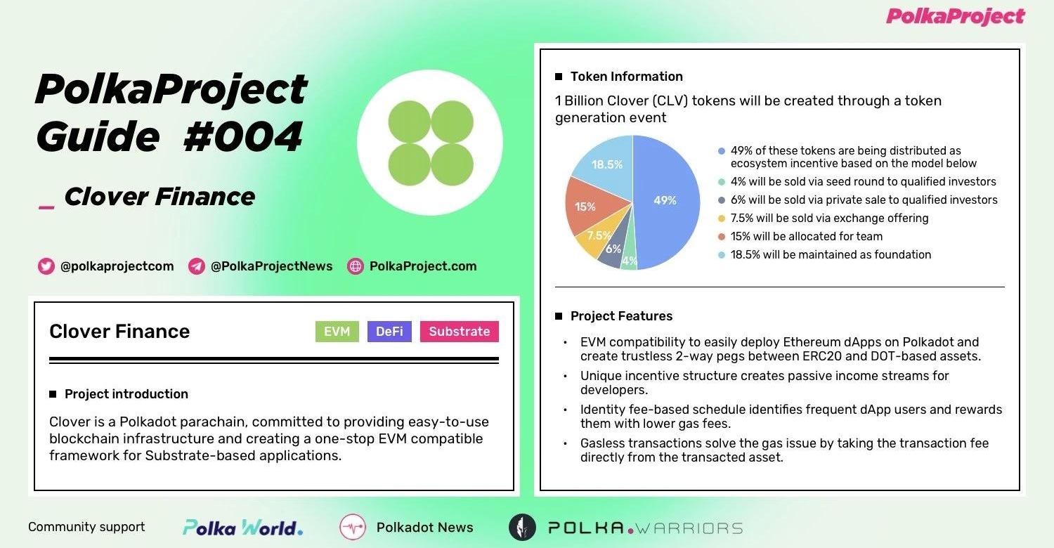 SKU的代幣分配中,除了空投給參與Coinlist公募的用戶之外。其他的在Sakura成功贏得卡槽之后,質押KSM的用戶獲得的獎勵中中28%將會立即釋放,剩余72%將會在48周內線性釋放。Q10Odaily星球日報:最后一個問題可能會稍微更寬泛一點,之前我們曾看到過這么一句話——「Clover想要打造最輕、最快的跨鏈DeFi基礎構架」。在Clover看來,未來的區塊鏈世界以及DeFi究竟會是什么樣子?在這一愿景中,Clover將扮演什么樣的角色?Clover:這里,我用一個比喻來回答吧。如果說區塊鏈世界即宇宙,鏈即星球,現在單個星球上的貿易已經很繁榮了,但星球和星球之間的交流渠道還很不順暢,只有少數星球之間建立了貿易關系。我們希望成為星球和星球之間的溝通和貿易的渠道,降低摩擦,提高交流效率,一起構建宇宙命運共同體。CloverFinance希望成為波卡生態上最大連接者的角色,連接整個DeFi領域和波卡生態,降低用戶參與區塊鏈的門檻的同時,幫助開發者和項目方享受整個波卡生態的紅利。想要了解更多關于Clover的信息,請關注Clover的海外官方平臺:官網:https://clover.finance/Medium:https://projectclover.medium.com/Telegram:https://t.me/clover_en/Twitter:https://twitter.com/clover_finance/