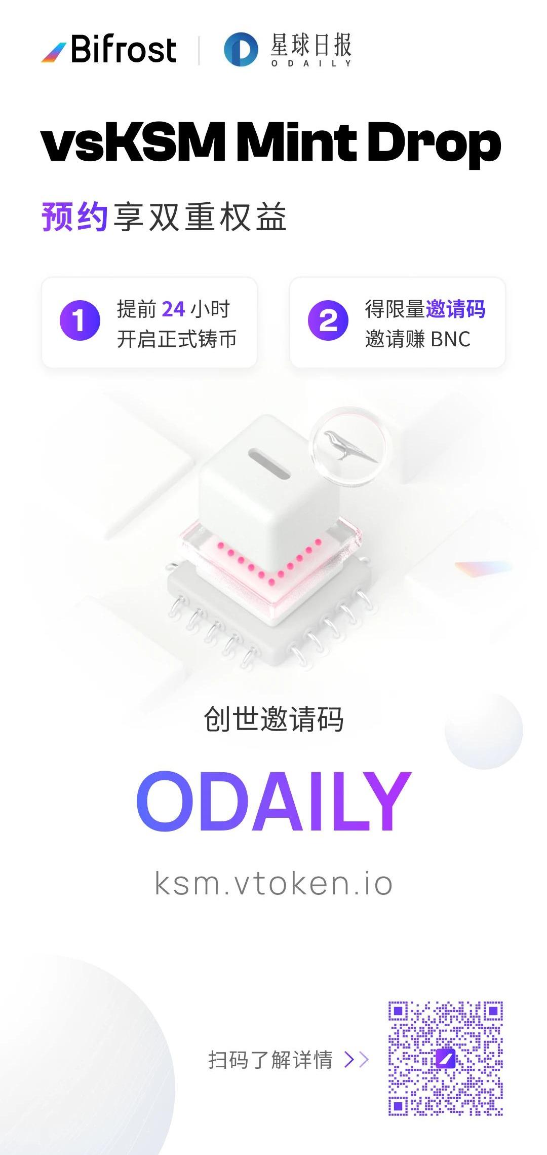 本次活動,Odaily星球日報也作為合作媒體參與其中,讀者可掃描下方海報中的二維碼;或關注Odaily公眾號,后臺留言“bifrost”,即可參與活動。填寫邀請碼“ODAILY”獲取質押獎勵~