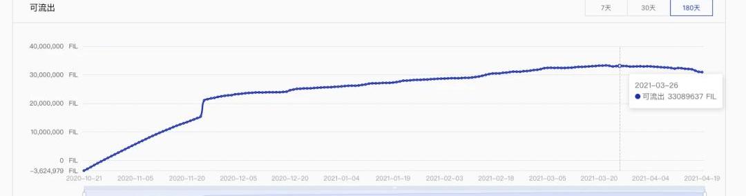 礦機的可流出量就意味著從礦機中可以賣出的FIL的量可以看出從3月26號左右之后,礦機的可流出量開始下降,大概率是兩個主要原因:FIL價格開始攀升,達到一些礦工的心理價位,一些礦工開始拋售礦機中儲存的產出FIL礦機的每日算力開始增速,需要質押和gas燃燒的FIL開始增加,礦機錢包中的FIL開始減少