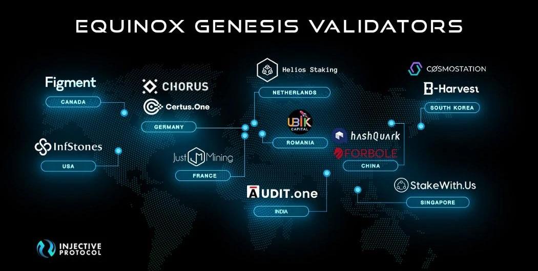 在本月初,我們推出了EquinoxPre-Staking作為InjectiveEquinoxStake競賽的第一步。Pre-Staking使用戶能夠將其ERC-20INJ代幣轉移到Injective中并開始賺取收益。為了進一步回報社區的耐心,我們還將基準APY提高到15%。在Pre-Staking推出之后短短的兩天內,總共有超過2000萬美元的代幣被質押。之后,我們正式向公眾推出了備受期待的EquinoxStaking。這個里程碑標志著用戶首次可以與原生Injective鏈進行交互,Injective鏈提供了強大的功能,例如零gas費和快速的交易時間。Staking鏈接:https://staking.injective.network/操作指南:https://m.weibo.cn/7452104340/46214778556307434.新的創世驗證節點加入EquinoxStaking