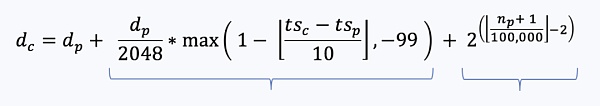 高斯鐘表合約的另一個主要特點是如何選擇這些元素。它們的數量越多,顯示的內容就越動態、越豐富。為了選擇面內循環的項目數量,根據計時器和其主人的 "在鏈度 ",我用了一個簡單的方程式來說明: