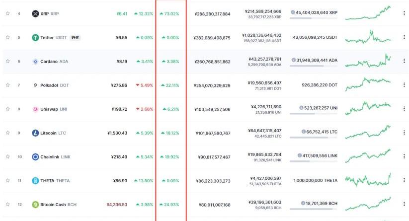 XRP/HKD-0.68%據Bitcoinwin數字貨幣交易平臺最新行情顯示,BTC在24H內持續震蕩調整。昨晚在橫盤之后空方嘗試下探,最低至57430,然而行情跌勢未止,今日幣價繼續下探。截至發稿,BTC暫報58300,日內上漲0.82%,24h內下跌0.97%。本周二比特幣價格波動變化不大,繼續在58000美元徘徊,這種折磨人的行情最容易令沒有耐性的投資者選擇下車,一方面擔心價格短期漲不起來,怕跌!另外一方面選擇換幣,去換近期漲得不錯的幣種。其實近兩周,由于BTC的絕對高位橫盤,導致大量BTC短線持有投機者出逃,這些活躍資金會轉向選擇活性不錯,漲勢良好的主流幣,比如ETH,EOS,XRP,TRX等,這也導致近期許多主流拉升至相當高的位置。在下圖我們可以看到近一周,市值排名比較靠前的幣種的漲跌幅統計。