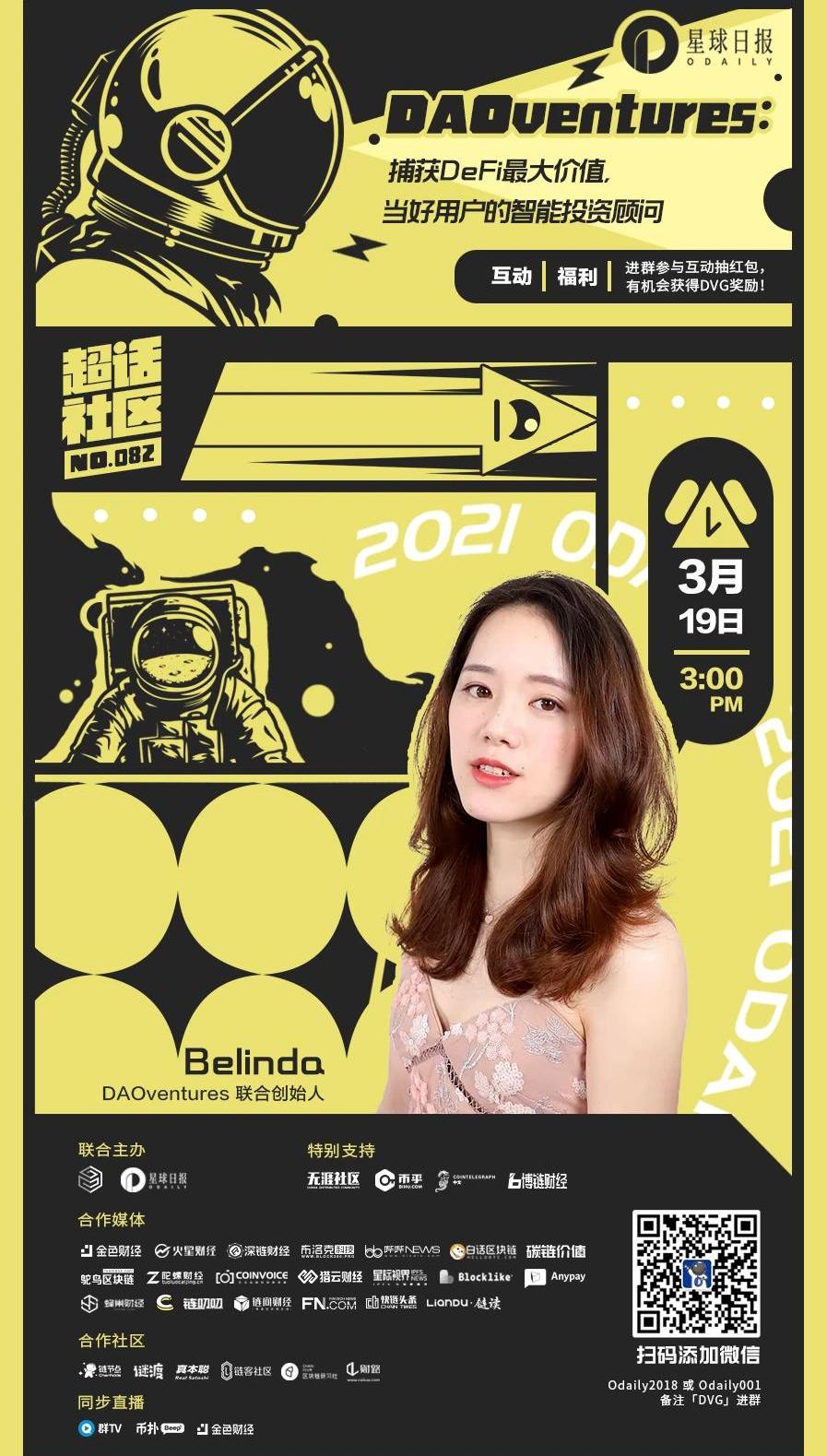 2021年03月19日周五下午3:00歡迎掃碼進群參與。另外有任何關于DAOventures的問題,歡迎留言,我們收集起來邀請嘉賓解答,提問還有機會獲得紅包及星球周邊哦。