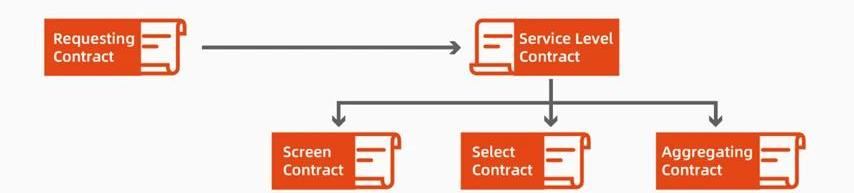 首先,ADAMOracle會發送一個數據請求合約來獲取數據。ADAMOracle協議將數據請求注冊為一個“事件日志”,再在區塊鏈上創建對應的智能合約(即服務水平合約),獲取鏈下數據,服務水平合約會生成三個子合約,即ADAMOracle篩選合約、ADAMOracle選擇合約、ADAMOracle聚合合約。