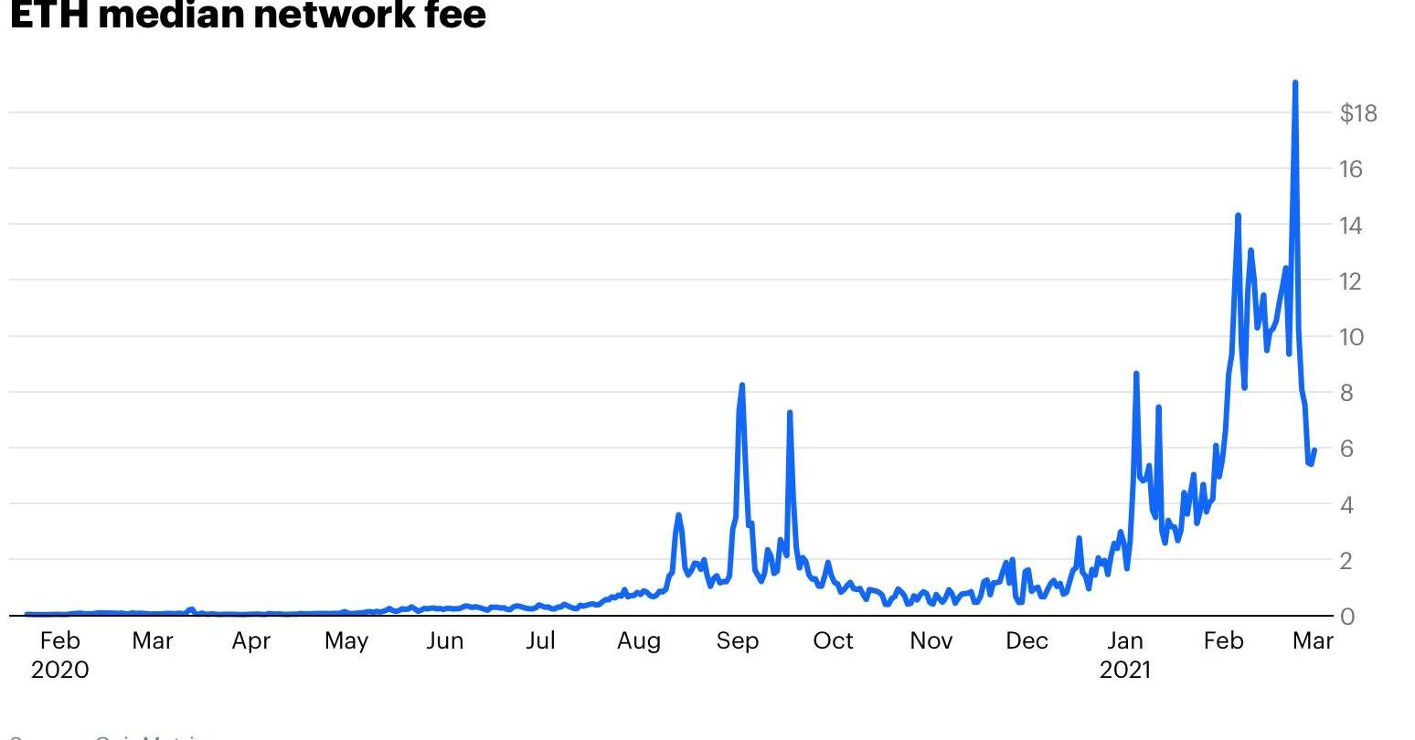 在以太坊2014年創建之時,創始團隊就清楚地意識到該區塊鏈有一個最終需要修復的根本性缺陷。因為它使用了一種稱為工作量證明的“共識機制”,所以當區塊鏈流量增加時,交易時間會變慢,費用會增加。我們在本文中介紹的DeFi和其他智能合約工具所處理的事務數量之多導致了以太坊的可擴展性瓶頸。結果,以太坊網絡的使用變得越來越昂貴。截至2021年2月,每筆交易的ETH“gas”費用約為10美元。