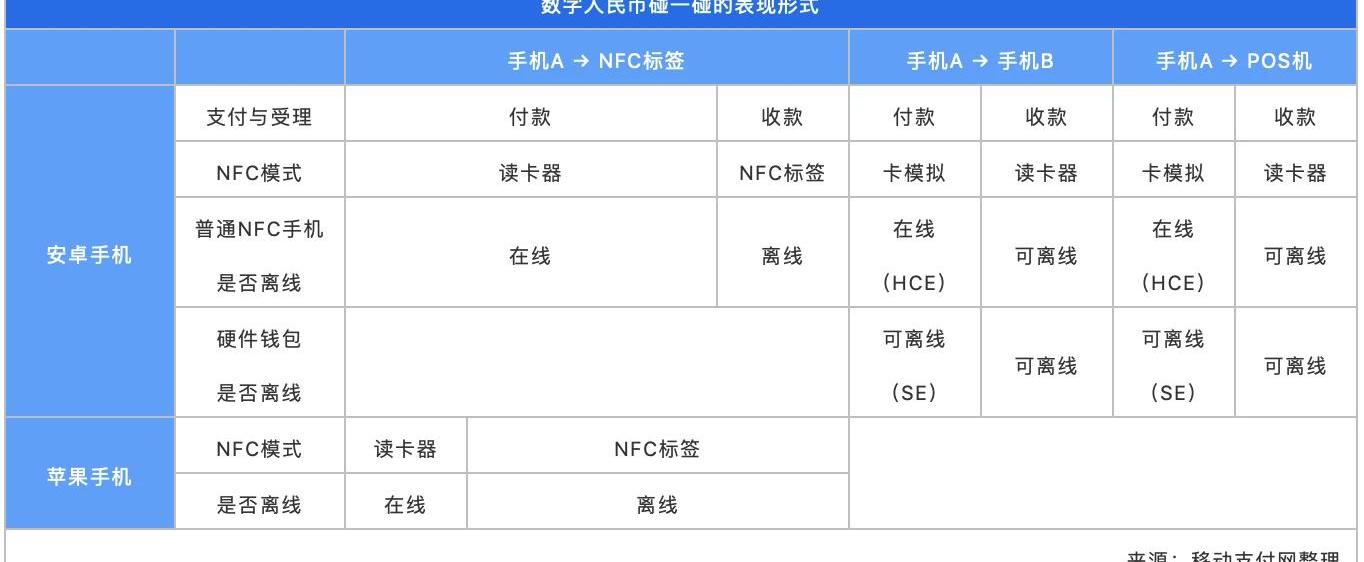 XRP/HKD-3.55%編者按:本文來自數字法幣研究社,作者:佘云峰,星球日報經授權發布。近日,北京數字人民幣試點活動已經圓滿結束,此次活動中除了中簽用戶使用手機App支付之外,還亮相了包括可視卡、手表手環、充電寶、老年拐杖、老年警報器在內的各種類型的數字人民幣硬件錢包。而這些多種形態的硬件錢包本質上可以“不依賴手機”碰一碰支付數字人民幣,兩個硬件錢包之間的碰一碰支付也就是我們常說的雙離線。那么到底什么是數字人民幣的“碰一碰”呢?基于手機的“碰一碰”到底有哪些形式?以下內容節選自移動支付網《數字人民幣發展研究報告2020》。“碰一碰”是數字人民幣的一項收付款功能,其基于NFC功能,實現終端與終端之間、終端與標簽之間的信息交互,從而達到收付款的目的。