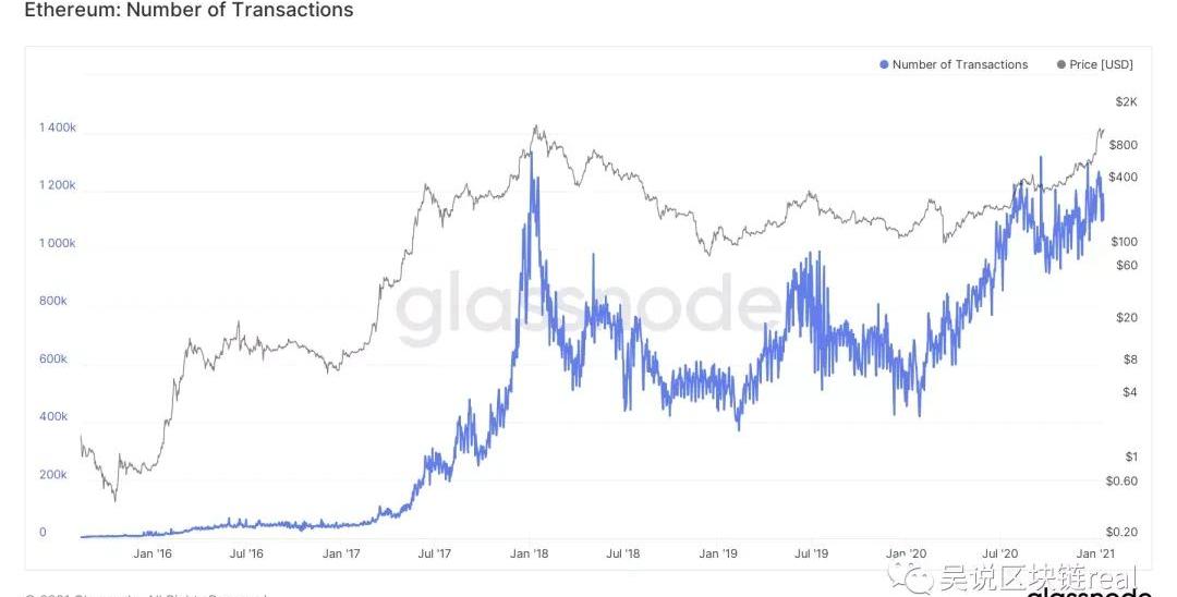 據glassnode數據顯示,ETH近期交易量已逼近2018年幣價峰值水平。與2018年交易量的暴增暴跌不同,本輪行情ETH交易量整體維持在高位震蕩,這顯示了投資者對ETH的投資熱情不是沖動性的,大有在蓄力的感覺,相信ETH突破前高不會是本輪行情的終點。原因四:機構加持