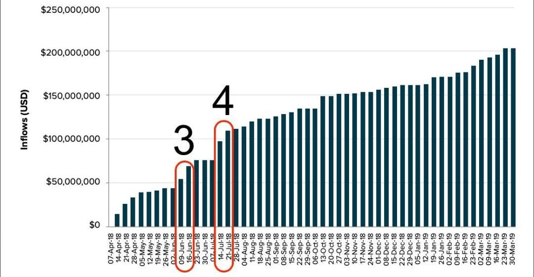 記住,比特幣可以是5000美元,也可以是50000美元,以BTC為單位的回報率是不會改變的。重點是以比特幣的數量來增長投資組合。只要溢價存在,投資者就會增加自己的持倉。現在回到轉債的低潮期,第5和第6檔這兩檔是獨特的,解鎖發生在信托公司從12個月的鎖定期轉為只有6個月的鎖定期。規則改變發生在2020年1月21日,需要90天才能生效。我不確定這是否適用于已經在解鎖時限內的股票,還是只適用于新發行的股票。一會兒我會給你看,我的直覺說,它并不適用于已經處于待售狀態的股票。這里是第5批和第6批。如你所見,第6批使信托基金的流入量增加了一倍多。