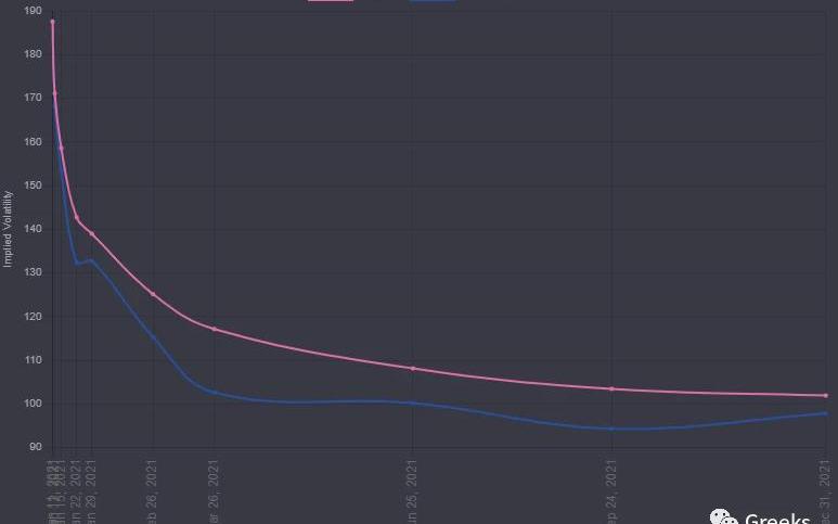 BTC歷史波動率10d108%30d79%90d62%1Y81%期權成交量7.90億美元,目前持倉量為77億美元,持倉量維持不變。各標準化期限隱含波動率:今日:1m138.4%,3m117.5%,6m108.4%1/10:1m144.8%,3m123.5%,6m113.1%比特幣今天迎來大幅度回調,全面Fomo階段告一段落,所有的多方都被吊打,利潤大幅回吐。但是目前主要期限隱含波動率并沒有明顯上升,只有超短期起飛。