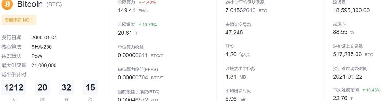 “礦工是牛市最大的贏家。”F2PoolCMO青青在近日的一場活動中表示,機構大量進場的趨勢越來越明顯,比特幣需求量增加,而獲得比特幣最容易的方式就是挖礦。資深礦工小海表示,以每“TH/s”的收入來衡量,比特幣挖礦收入在近3個月里增長了兩倍多。“10月初,每‘TH/s’的收入約為0.07至0.08美元,最近一周里飆升到了0.27至0.28美元。”他進一步說道。由此可見,礦工是牛市的最大受益人群之一。與之相伴的是,礦機市場再次復蘇。據華強北一位礦機銷售經理介紹,自2020年11月以來,隨著比特幣價格的不斷上漲,不僅新礦機供不應求,二手礦機亦成了搶手貨。1月9日,“比特幣礦機價格翻倍仍供不應求”登上熱搜。據梨視頻報道,1月8日在深圳華強北賽格市場中,售賣礦機的店鋪仍在,但也有一些“人去鋪空”的現象。礦機銷售員表示,礦機價格兩個月之內翻了一倍,但仍供不應求,就看你有沒有貨源。礦機緊俏的同時,挖礦難度不斷攀升。據OKLink數據顯示,1月9日23時25分,比特幣網絡在665280高度迎來難度調整,此次難度調整至20.61T,上升幅度高達10.79%。下次挖礦難度調整時間約為1月22日,預計難度將再次上調10.43%至22.76T,屆時將再刷歷史新高。
