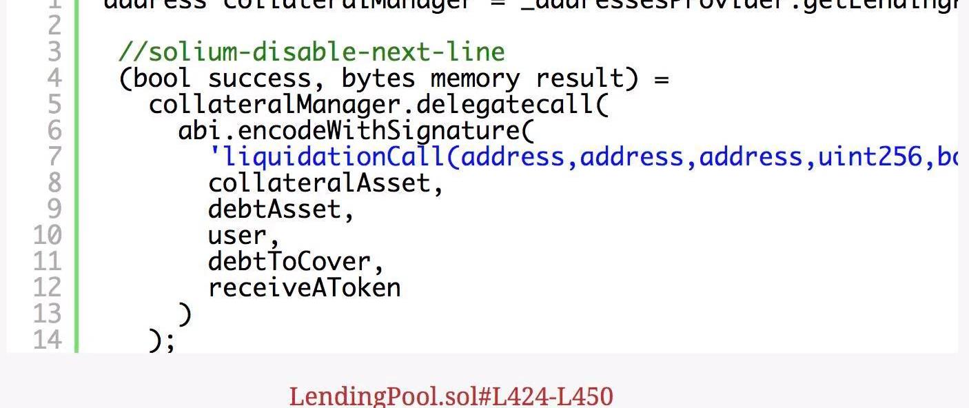 LendingPool.liquidationCall直接委托調用由_addressProvider返回的地址: