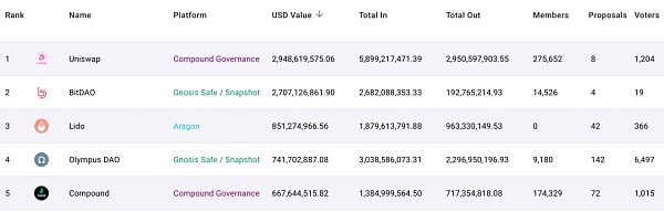 根據資產管理排名前五的DAO項目 ?來源:Deepdao