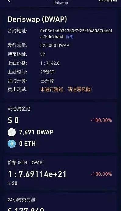 Deriswap目前正在接受審計,其余的細節包括具體的推出日期等并未公布,AndreCronje也并未公布關于Deriswap代幣的任何信息,是否會就該項目推出新的代幣目前尚不清楚。但值得警惕的是,據Twitter上的評論指出,網絡上目前已出現一批虛假代幣地址,且同時期Uniswap上已經出現了名為DSWAP的假幣,持有者達到60人,其中一個資金池在不到30分鐘的時間里就騙取了53000美元。