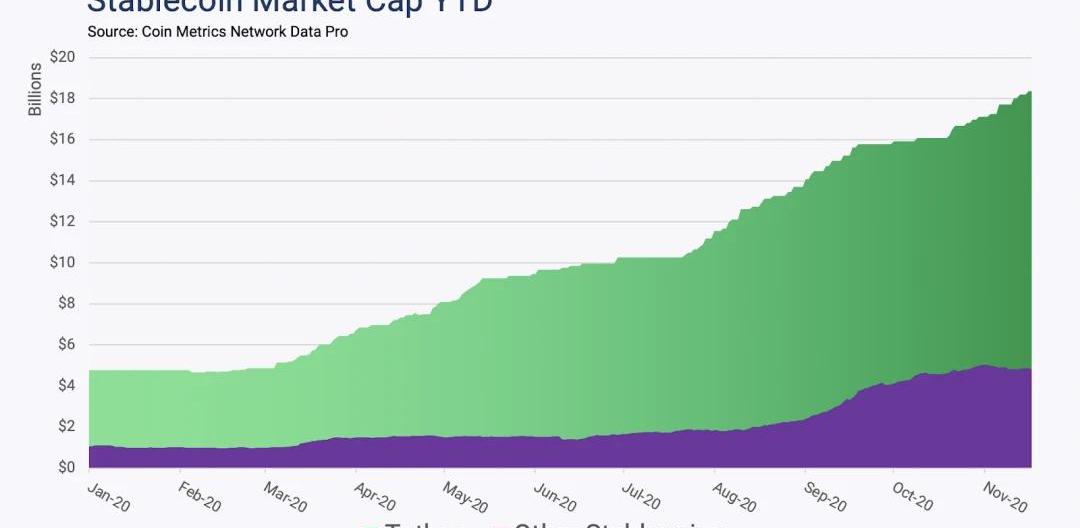 盡管中國對比特幣業務的打擊無疑影響了Huobi,但可能還有其他因素減少了西方的交易所托管的資產。穩定幣可能是造成這種減少的原因之一。作為背景,穩定幣總市值年初至今增長了3倍,從1月份的58億美元增長到截至11月的178億美元之多。由于在中心化交易所有存款的最大好處之一是法幣的存入提出,穩定幣可能會爭奪部分效用。我們在《穩定幣的崛起》報告中探討了一些問題,該報告對穩定幣增長的驅動力進行了深入回顧。