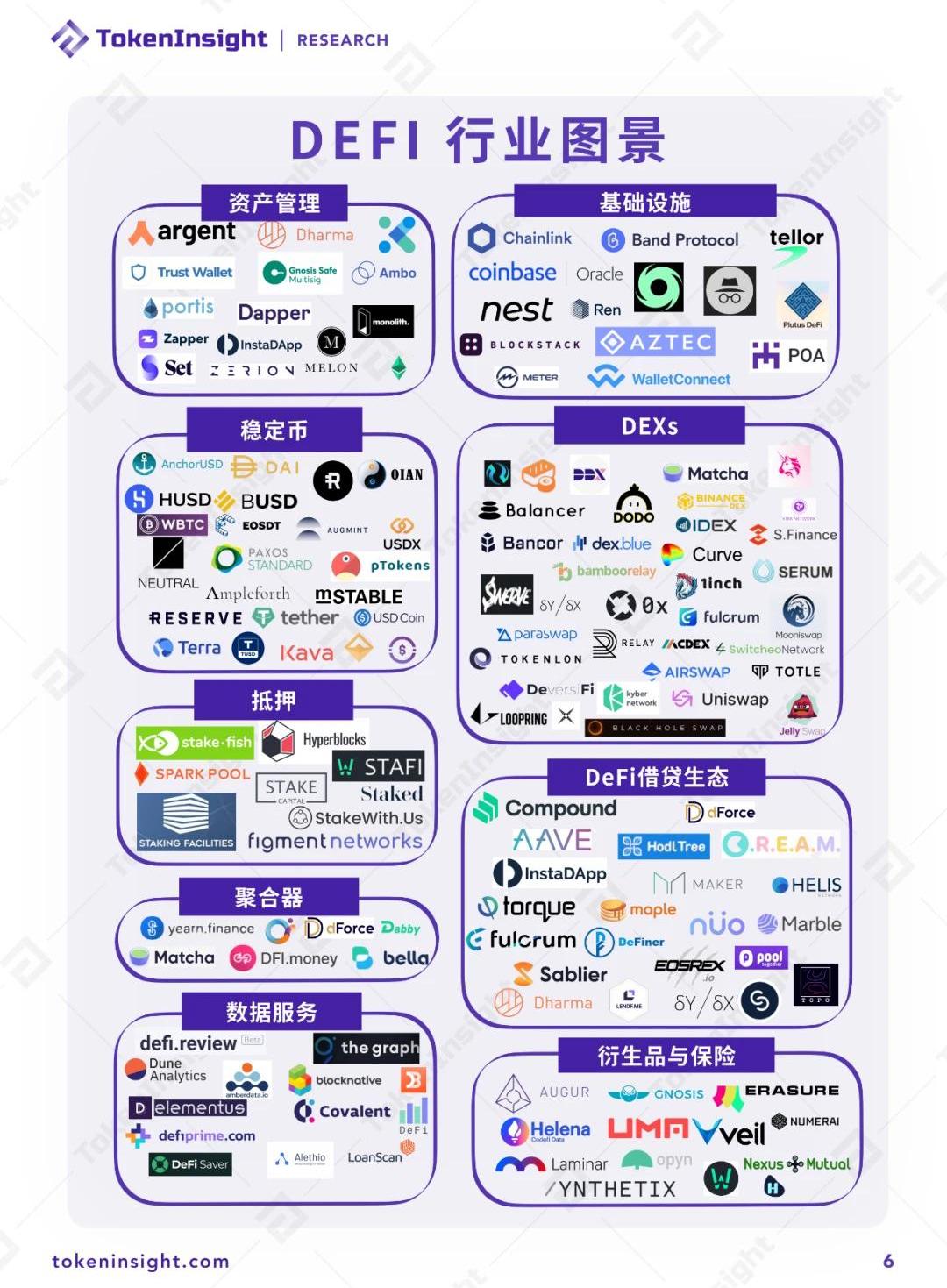 1.DeFi在三季度發展依舊強勢,總鎖倉量較二季度增長500%,達$11.4B。十月DeFi市場相對轉冷,月末鎖倉量與月初基本持平,DEX整體交易量回落,十月下降34%;2.DeFi的火爆將以太坊手續費推上9月初平均$14/筆的歷史高峰,DeFi表現受yearn.finance等熱點項目和事件驅動明顯;3.預言機項目Chainlink長期位居DeFi市值榜單第一。市值前十的DeFi項目平均回報率為89%,半數表現超以太坊;4.AMM驅動DEX交易量增長,三季度DEX總成交量達$47B,為歷史總成交量的4.2倍,較二季度環比增長1,155%;5.收益農耕帶給參與者的高收益在短時間內吸引了大量流動性和用戶,但農耕收益下降是必然趨勢,熱度褪去流動性增長也逐漸停滯;6.分叉項目發展初期與原項目搶奪市場,呈現“此漲彼跌”的趨勢,但長期來看難以對原項目產生本質上的地位撼動;7.衍生品領域仍由合成資產主導。整體鎖倉值較二季度增長169%,達$293M,占DeFi總鎖倉值比例由季度初的15%下降至季度末的7%,九月下旬熱度退潮趨勢較借貸和DEX明顯。