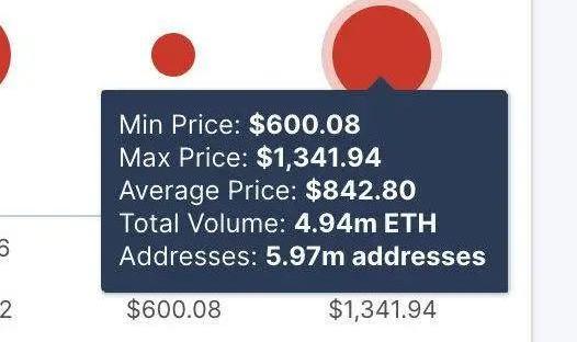 如果以太坊價格再次突破600美元的整數值,意味著最終只有597萬個以太坊地址、494萬枚ETH處于虧損狀態。這意味著,在以太坊突破600美元之后,將會有96%左右的以太坊處于盈利或者回本狀態。