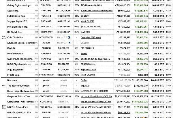 自進入10月以來,比特幣出現連續上漲的情況,這一輪上漲背后的邏輯比較清晰,是由美國的機構驅動的,先是推特旗下的投資平臺Square買入了5000萬美元的比特幣,又有多家上市公司宣布持有比特幣,其中持有量前三名是灰度、Coinshares、MicroStrategy,僅這11家機構就持有了近60萬枚比特幣,按照目前流通盤來算,占了3.2%,如果按照實際市場的流通盤來算,占了約10%。另外,私人機構中,僅Block.one一家就持有14萬枚比特幣。
