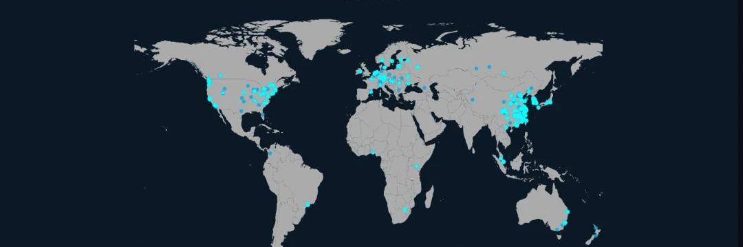 圖4:Storj的節點分布圖,可以看到亞洲稀少的節點分布,節點數8000+