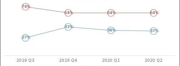 數據來源:genesis從活躍借貸額來看,中心化平臺的市場占比接近90%,遠大于DeFi的市場規模。DeFi借貸的市場占比從2019年第三季度到2020年第一季度下降了50%,第二季度由于挖礦熱潮,其市場占比有所回升,挖礦熱潮帶動的借貸活動是否能夠持續還需要時間驗證。在中心化借貸中,機構占據主要的市場份額,雖然2019年第三季度后有所下降,但仍然遠遠超過個人市場。總體來看,當前整個加密借貸市場最主要的客戶是機構。