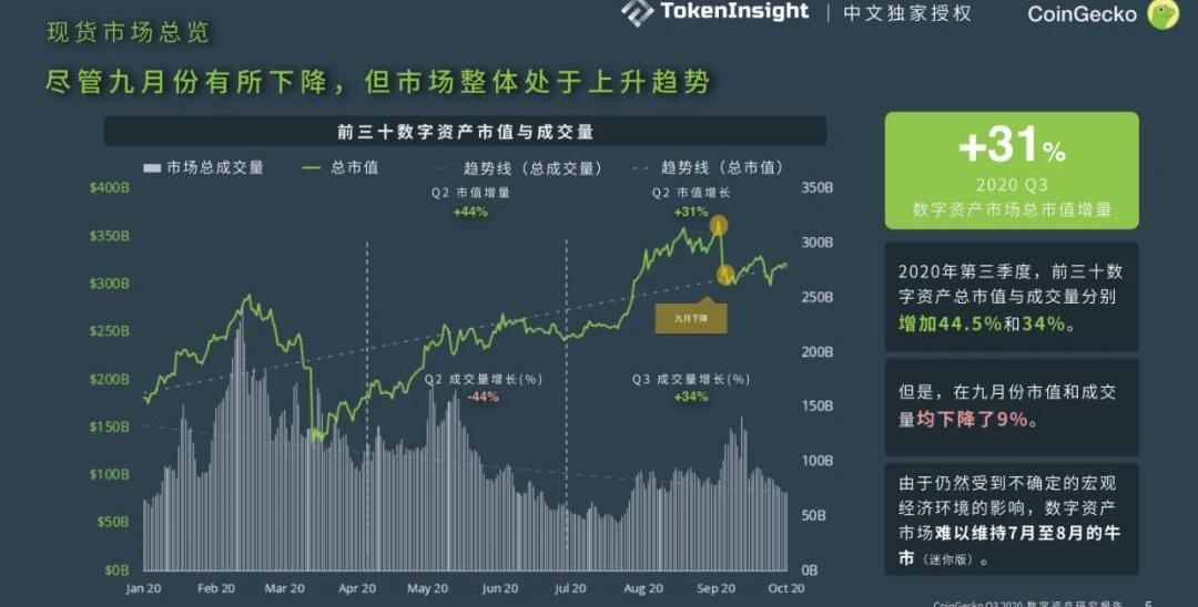 XRP/HKD-7.59%要點總結TokenInsight作為CoinGecko全球戰略合作伙伴,中文獨家發布CoinGecko2020Q3數字資產行業季度報告。2020年第三季度,去中心化金融大放異彩。DeFi項目在7月和8月繼續保持強勁增長,盡管9月份終于有所改觀。去中心化交易所的交易量強勁增長,前十大DEX在9月份實現了300億美元的交易量。在第三季度,排名前10位的DEX的交易量平均每月增長197%。與之相比,中心化交易所的數據則僅為35%。第三季度還見證了Sushiswap的上線,并目睹了第一次“吸血”式的流動性挖礦“進攻”。Sushiswap引入了其治理通證SUSHI,并從Uniswap搶走了流動性。在此期間,我們看到Uniswap的流動性下降,這可能也是Uniswap團隊加快了其UNI治理Token發行計劃的原因。