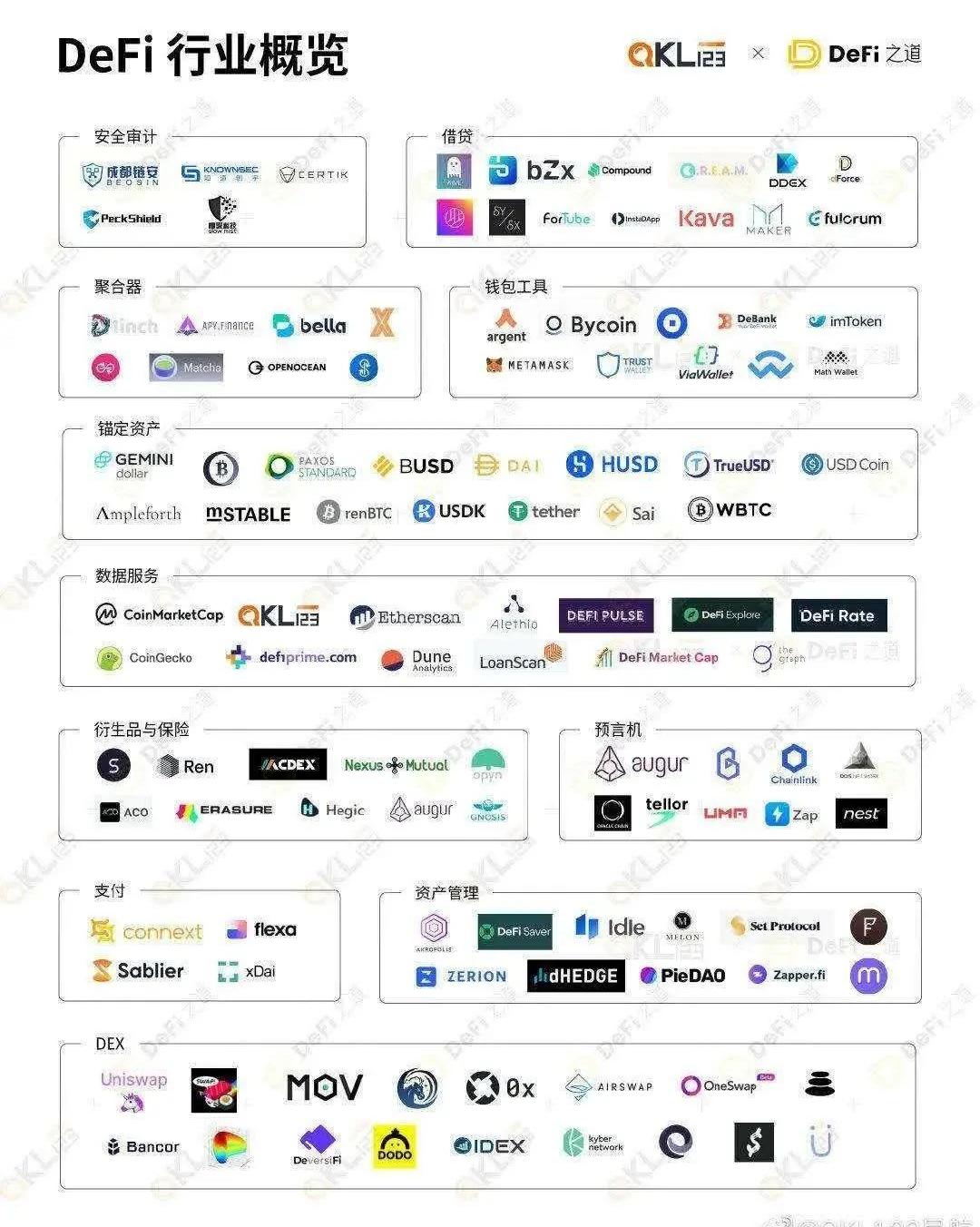 博主說:“從下到上,從內到外的理解區塊鏈世界的框架和推演,對發現新機會很有幫助,誰也無法預測新機會出現在哪,但有了好的框架,當新機會出現時,會更快的發現和認可,并積極參與。”這張圖很有意思,多看多思考區塊鏈的發展,有助于了解區塊鏈全貌。從底層、中間間、應用層到用戶層,現在底層的BTC和ETH啟動了,這會滋潤到誰呢?當然BTC和ETH的這種啟動不同的點是,大量的機構入場購買比特幣,比如灰度、美股上市公司等;paypal將帶用戶進入加密貨幣市場,對于區塊鏈市場具有重大意義,paypal有3億多用戶,意味著一下子為加密貨幣市場增加三億多潛在用戶。ETH2.0要開啟創世區塊,ETH2.0對誰有益呢?當然很多項目會從中收益。個人覺得首先會是目前ETH上的協議,也就是DeFi。同時,大量的BTC也正在流向ETH鏈上,當BTC和ETH等主流資產起來,那么作為去中心化金融的DeFi就有了更大的發揮空間。二、DeFi行業概覽