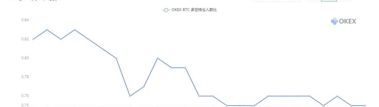 若是像10月中旬一樣,時間再拉長一點,后期起到的作用就越大,當然并不是一定會繼續上漲,但像這種上漲趨勢中進入平臺期,都將其看做是上漲中繼,整體是上漲概率大于下跌概率,跟隨趨勢比去猜測趨勢要更靠譜一些。比較離譜的是,當前OKEX上的多空持倉比一直在減小,也就是說,做空的人越來越多,在行情如此強勢的情況下,依然不斷涌入空單,用幣圈的話來說就是“欠拉了”。