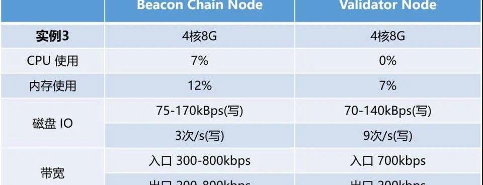 圖3此外,在本階段的測試中,對磁盤的I/O性能和外網帶寬要求很低,可能是由于私網的原因,具體的對應的性能要求還需要在ETH2.0官方測試網中進行測試。第二階段對比測試