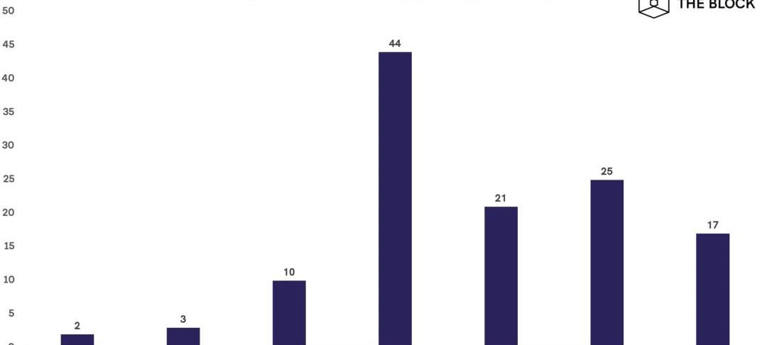自DeFi項目啟動以來,2017年成為最受歡迎的一年——正好與2017年的牛市相吻合。在我們的數據集中,36%的公司是在2017年成立的,20%是在2019年。到2020年還有三個月的時間,17家新的DeFi公司已經成立。對于DeFi公司來說,今年是第三受歡迎的一年。