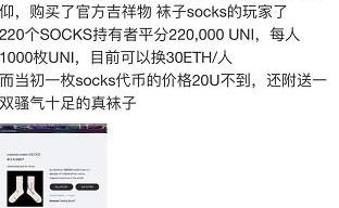 分配給社區部分的25%,即總量的15%的UNI將基于9月1日的快照,提供給早期的UniswapLP、用戶、SOCKS贖回和持有用戶:其中,總量4.92%,即約4917萬枚UNI將分配給49192個早期LP;另外占總量10.06%UNI將會分配給25萬早期用戶。0.02%的代幣總供應鏈提供給220SOCKS持有者。按照Uni現在的價格來算的話,就是人人都能領取的400UNI價值接近1400U,持有SOCKS的人,則是人人領取3500U;按照總體來算的話,也就是說總數量在1.5億枚UNI,總價值約為5.25億美金,大概折合人民幣35.7億,這算是今年看見最大的羊毛了,當然只有參與過UniSwap的人才能領取。
