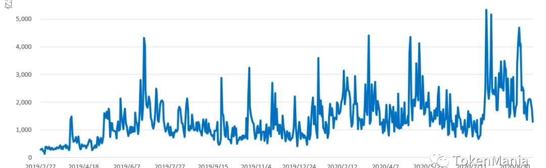 資料來源:非小號,TokenMania從更長的時間維度來看,2020年初至2月底,減產預期作用下市場積極向好,量能同步放大;3月疫情全球擴散,全球資本市場出現大幅波動和恐慌性下跌,流動性危機之下加密資產亦受重創,日成交量最高達4000億元;隨著全球多國政策持續發力,強刺激下全球資產逐漸探底企穩,全球風險偏好逐步修復,加密市場抄底資金托底跡象明顯,恐慌性下跌結束后,九大交易所成交量降至2000億元以下;比特幣減半前市場量價有所增長,但減半完成后的一段時間內市場反應平淡,波動收窄,整體處于區間震蕩,成交量呈下行趨勢;經歷數周區間調整后,BTC價格突破12000美元,但隨后又震蕩回調,本周九大交易所日均成交量1884.76億元,較上周下降89.30億元,降幅為4.52%。考慮到目前各大交易所存在刷量的行為,實際成交數據可能低于統計數據。全球比特幣場外交易量下降6.82%至3770.5萬美元,中國比特幣場外交易量增加25.19%至979.49萬元,委內瑞拉比特幣場外交易量增加3.29%至18251.1億玻利瓦爾,依據當前委內瑞拉玻利瓦爾和人民幣兌換比例計算,最近一周場外BTC交易量約4135.839萬元;前一個統計周按當時匯率計算的場外BTC交易量約4010.813萬元,最近一周較前一周增加3.11%。圖5LocalBitcoins全球交易量