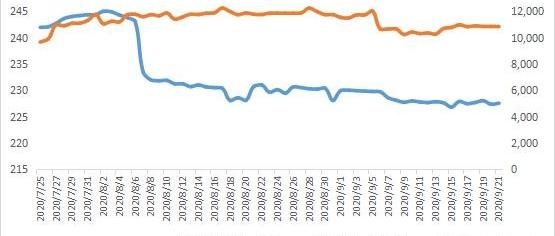 XRP/HKD-2.41%2020年第38周區塊鏈二級市場報告2020年9月15日-2020年9月22日本期報告重點內容:本周大盤走勢:外圍影響承壓下挫,市場情緒轉為恐懼交易所成交量:九大交易所日成交量均值下降4.52%數字資產換手率:十大數字資產累計換手率普遍收跌交易所錢包余額:BTC余額下降0.02%,USDT余額增加1.01%USDT溢價率:低位區間窄幅震蕩,尾盤維持正溢價比特幣波動率指數:波動率指數震蕩下行,市場情緒維持謹慎期貨合約:基差擴大分歧加劇,Bakkt日成交量屢破新高宏觀視角:各類風險資產收益率分化,歐美股市大幅下挫總結本期報告詳細內容:1.本周大盤走勢:外圍影響承壓下挫,市場情緒中性轉恐懼截至報告統計時間,本周全球區塊鏈資產總市值均值為3212.42億美元,較上周同期上升1.76%;市場24小時成交量日均值1266.794億美元,較上周均值下降36.47%。截至報告統計時間,Tokenmania8周行情指數最新點位-2.02%,Tokenmania32周行情指數最新點位-1.34%,Tokenmania60周行情指數最新點位-2.84%。本周大盤受外圍市場影響承壓下挫,大中小市值幣種全面回調,投資者情緒由中性轉為恐懼。周初大盤維持3400-3600億美元附近窄幅震蕩,最高觸及3551億美元,9月21日晚間大盤急跌回落至3260億美元下方,而后弱勢反彈尾盤收報3290億美元上方,總市值日均值較上周同期上升1.76%。外圍市場方面,美聯儲9月最新利率決議符合市場的普遍預期,但未給出進一步經濟刺激的承諾,受北半球秋冬疫情進一步惡化擔憂以及美國選情的不確定性影響,9月21日除美元維持強勢外全球資產普跌,歐美股市大幅下挫,COMEX黃金期貨跌逾2%,創兩個月以來新低。本周比特幣價格前期維持漲勢,周六短時上攻11000美元關口后,未能成功企穩,9月21日受外圍影響瀑布下跌回吐全部漲幅,跌破10500強支撐區間后繼續下探10300美元,尾盤收于10400美元上方。從盤面上看,當前價格與外圍市場聯動性高,價格破位下跌后目前尚未企穩,盡管恐慌盤風險已在較大程度得到釋放,但當前抄底資金尚未明顯對幣價形成托底,目前投資者情緒由中立轉為恐懼,外圍資金流動性需求依然趨緊,上方籌碼壓力位承壓明顯,考慮目前外部環境存在較大不確定性,海外市場底部尚未確認,市場情緒較為脆弱,新增資金入場受阻,短期看弱勢調整或將延續于10200美元附近震蕩整理,在外圍市場未趨穩的情況下不建議重倉抄底。同時,當前比特幣振幅加大,建議期貨投資者注意風險嚴控倉位,優選平臺,防范插針和平臺宕機等原因導致的爆倉。圖1近3個月全球區塊鏈資產總市值變化