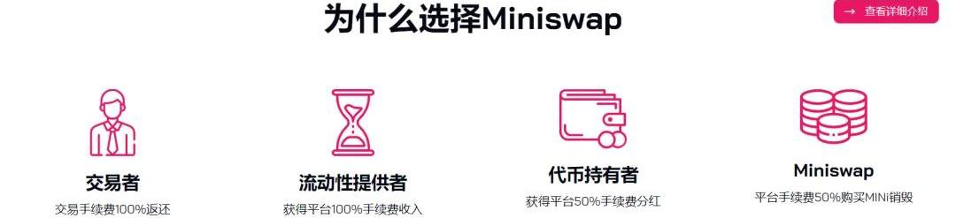 對比SUSHISWAP和MINISWAP兩者的FCOIN模式:1、有限對無限:SUSHISWAP代幣無上限,每天增發;MINISWAP上限10億枚。2、分紅差3倍:SUSHISWAP手續費的0.05%分給SUSHI代幣持有者;MINISWAP手續費的0.15%分給MINI代幣持有者。同樣采用了FCOIN的交易挖礦模式,無限對有限,0.05%對0.15%分紅。誰能勝出,這就很有意思了。還有一點值得關注,就是項目未來的治理問題,DeFi項目往DAO治理方向上走,已經成為了一個趨勢。誰能在DAO治理上走的更深更遠,是一個變量。