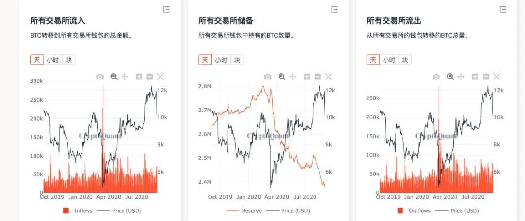 9月2日,納斯達克指數和標普500指數雙雙創下新高,分別收于11210.84點、3389.78點。然而,昨夜美股開盤后,未能延續漲勢,納斯達克指數和標普500指數從歷史高位回落,遭遇數月來最大跌幅,分別下跌4.96%、3.52%。受此影響,與美股有著高度關聯性的比特幣,也開始下跌,最終跌破1萬美元大關。礦工拋售過去40天,比特幣價格始終維持在1萬美元以上;特別是有近30天,價格處于1.1萬美元以上。持續高昂的價格,這對礦工來說,意味著收益的增加。因此,一些礦工選擇高位變現。Cryptoquant數據顯示,從8月上旬開始,交易所凈流入BTC量接連上漲,并于8月17日達到高點。