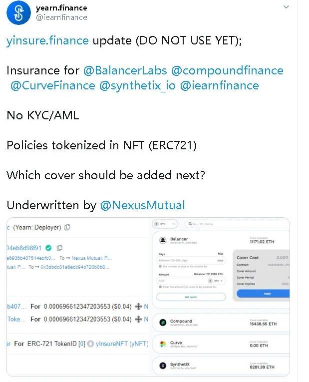 DeFi中最具創新的兩個項目:1)大姨夫(YFI):無私募、無預售、無團隊預留,開創了最激進的代幣分發模式,YFI聚合挖礦成為了頂級的資管平臺,并大規模引進穩定幣B。2)安培(AMPL):安培的算法穩定幣,開創了Rebase機制,成了DEX的坐上賓,DeFi世界的印鈔機。暴漲的代幣都跟這些或多或少的關聯。1、YFI和YFII為代表的姨夫系列大姨夫等于3個多BTC,在大姨夫的帶領下,二姨夫、五姨夫等等都在漲,貌似Y開頭的都在漲,非常瘋狂。大姨夫的威力真牛逼,大姨夫的威力還不止于此。大姨夫幫nxm賣保險。NXM作為合規落地公司必須要KYC和加密世界definance的沖突和矛盾,為NXM打開一個海量的業務入口,在YFI上買的保險直接通過智能合約流入NXM。為NXM直接導流了,可想而知,NXM也是一頓暴漲。