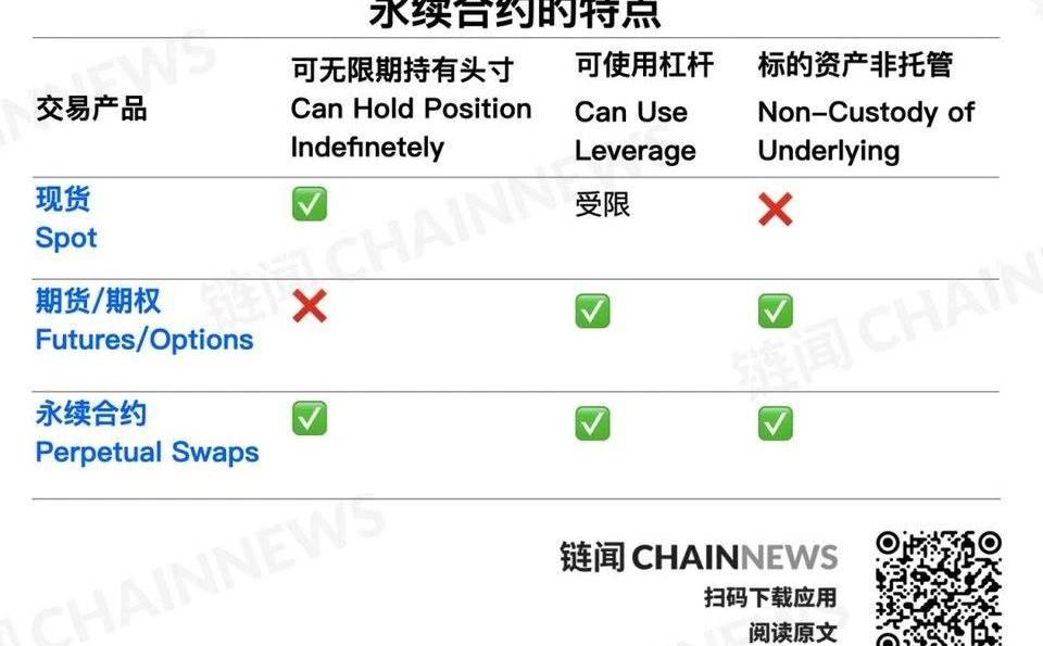 永續合約是一種衍生品,允許用戶在市場上買賣標的資產價值,類似于傳統的期貨合約,但有其特色之處,主要特點如下:頭寸沒有到期日/結算日,想持有多久都行;標的資產本身無需參與交易;永續合約的價格密切追蹤標的資產的市場價格;高杠桿:有靈活的杠桿倍數可供選擇;高流動性:永續合約是交易量最大的衍生品,有很強的流動性,買賣雙方更容易參與進來。