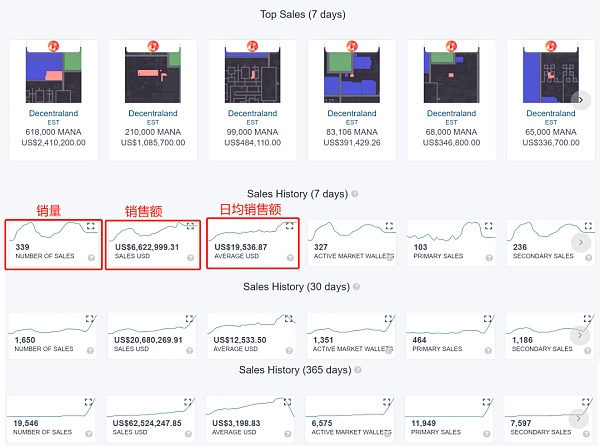 截圖自NonFungible網站,關于Decentraland的交易情況