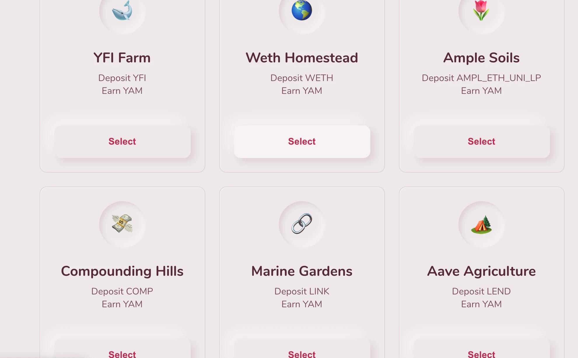 頁面像是進入到一款建設類游戲根據Twitter大Vweeb的計算,目前AMPL/ETH池子的收益最高,每小時ROI可達1.6%,年收益高達14049%,表現最差的池子為WETH池子,每小時ROI為0.263%,年收益為2296%。以下是weeb計算統計的八個抵押池的年收益:
