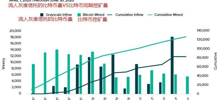 自2013年成立以來,灰度資產規模變化趨勢在2020年Q2,流入灰度的比特幣資金數量幾乎占同期比特幣挖礦量的70%,而在比特幣于2020年5月第三次減半后,這一比例增至118%。