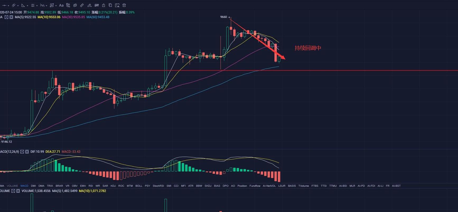 XRP/HKD-3.54%前天美國通知關閉中國駐休斯敦總領館,今天中國就開始反擊關閉了美國駐成都總領館,國際形勢逐漸呈現緊張態勢。這期間,金融市場也分別做出了各自的反應,A股在前日消息出來后尾盤沖高回落,今日最新消息發布時更是直接大跳水,這在一定程度上反應了股市中的情緒,在局勢動蕩的情況下猶如驚弓之鳥,有任何風吹草動大資金就加速出逃,頗像貿易戰最嚴峻時期的股市。黃金卻鉚足了火力開漲,昨日最高位達到1897美元/盎司,距離歷史最高位僅剩20美元不到,目前來看也有對國際形勢擔憂的因素存在,避險資金紛紛進場。恰巧的是,近幾日加密貨幣適時的進行了反彈,市場上便有說法認為,這是由于比特幣的避險屬性在發揮作用,后期若是情況未緩和,比特幣或許以此為契機開啟牛市。這種說法可以理解,但并不適用于加密貨幣市場當下的情況。首先高估了比特幣的避險效果,在今年上半年疫情爆發時,比特幣雖然適時的上漲進行了相當大幅度的反彈,但疫情究竟發揮了多大作用依然存疑。其次,當下加密貨幣市場的環境并不理想,雖然價格高居9000美元,但卻缺乏進一步上行的動力和量能,前期長時間的震蕩令幣市人氣不斷流失,當下恢復需要時間和步驟。恢復的第一步需要場內資金向頭部流動,即前期被山寨幣吸引的資金要重新回流至主流貨幣,才能構成主流幣進一步上行的基礎條件。而這僅是開始,以幣市內的現有資金,并不足以支撐市場開啟所謂的牛市,上漲至一定位置時,能成功吸引場外資金的流入,才算達成了初步條件。關于場外資金流入方面,效果最大的還是要數機構資金,機構資金密集,可以對市場形成資金大量涌入的沖擊感,而散戶大多不具備這樣的默契,只能在懷疑中躊躇進場。更何況,正常情況下,都是機構拉動大盤開始上漲,而且需要在恰當的位置拿到廉價籌碼后才會拉盤,初期場內散戶資金并不多,若是場內資金是以散戶為主,機構也不會發動行情,一是掌控力會減弱,二是盈利盤過多。大部分散戶是在市場最火爆也是莊家需要散戶接盤的時候才最耀眼,牛市中散戶虧錢快不是沒有原因的,這幾日的股市便是很好的例子。總之,牛市的步驟并不簡單,資金是牛市開啟的基礎,而不同資金的介入順序也很重要。如果在行情平淡時期突然出現利好消息但量能不為所動的話,往往只會為莊家收割創造條件。回到行情上,在進行了三連漲后,日內比特幣價格持續回落,下午短暫的回到了9500美元下方,預計日內會圍繞著9500美元展開拉鋸戰。日線級別行情比較清晰,前三日行情上漲過快,存在回踩有效支撐的必要,短期來看5日均線是第一支撐,近日量能也是小于前幾日同期,暫時可以看做是縮量回調,所以當下也不必太過慌張,方向依然未改變,只是震蕩時間的問題。